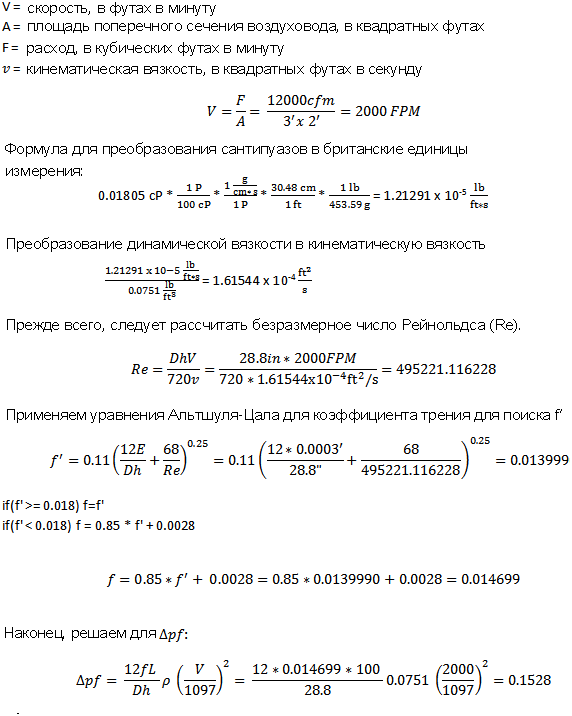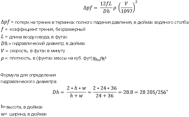 Ниже приведен пример расчета падения давления в Revit для 100-футового сегмента воздуховода прямоугольного сечения с размерами 36 дюймов x 24 дюйма при расходе воздуха 12 000 куб.футов/мин.