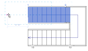 - При использовании инструмента редактирования, например, инструмента перемещения, отметка основания или верхняя отметка лестницы не изменяется, а изменяются начальная и конечная точки лестницы в пределах уровня.