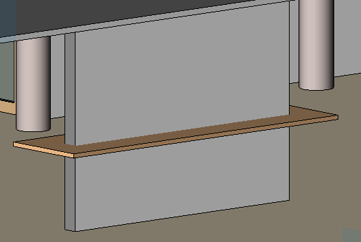 Семейство столешниц состоит из простого прямоугольного элемента выдавливания и располагается в центре стены. Столешница при размещении в стене ориентирована по центру (он обозначен красными точками на следующем рисунке).