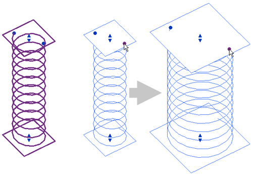 Для изменения длины спирали используются треугольные ручки управления формой в верхней точке и в основании спирали арматурного стержня. Для увеличения или уменьшения длины спирали следует перетащить стрелки в соответствующую сторону.