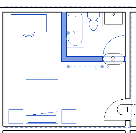 На иллюстрации показана та же группа после переноса точки начала. Теперь эта точка совмещена с внутренним углом стены.