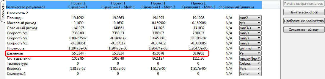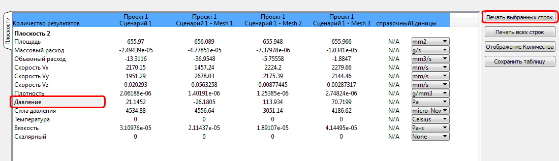 Для построения давления из четырех сеток, щелкните на Давлениеи нажмите кнопку Построить выбранные строки: