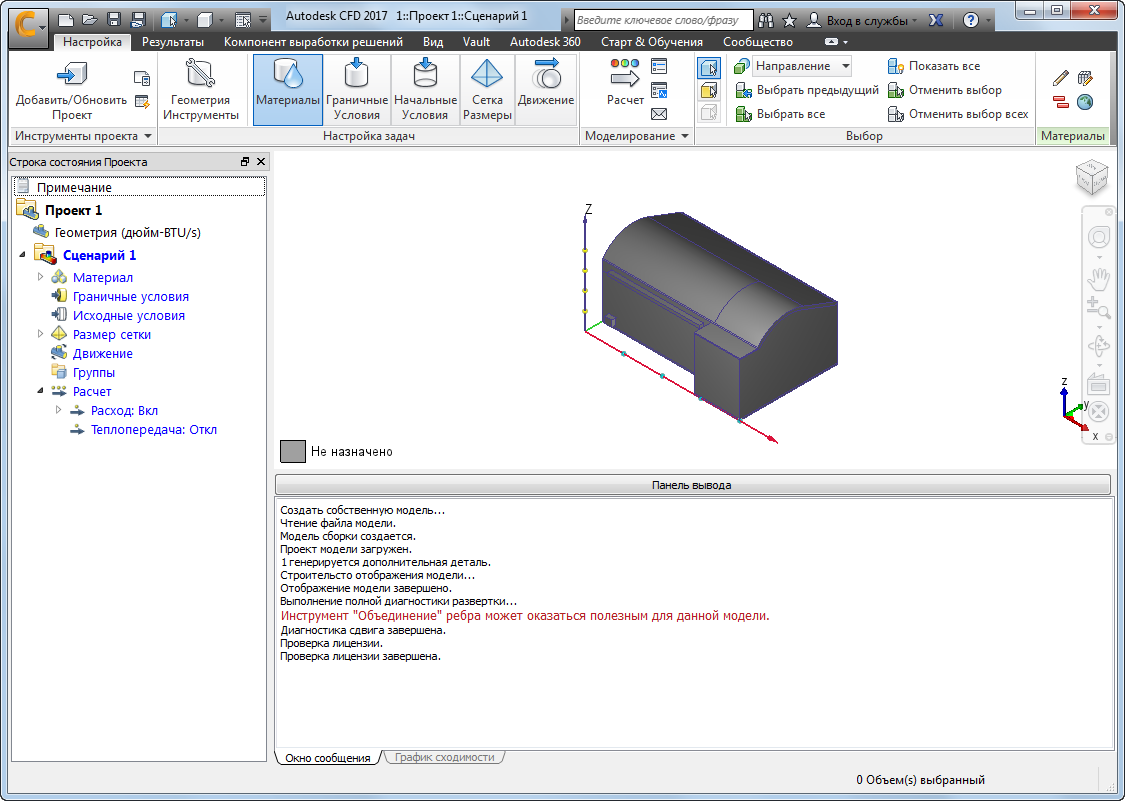 Прим.: Это общедоступный файл, который содержит только геометрию (без настроек). Он был создан при переносе модели из Autodesk® Revit в Autodesk® CFD.