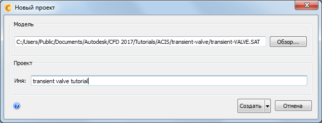 В диалоговом окне Диспетчера файлов перейдите в папку Users\Public\Public Documents\Autodesk\CFD 2018\Tutorials\<тип файла>\transient-valve.