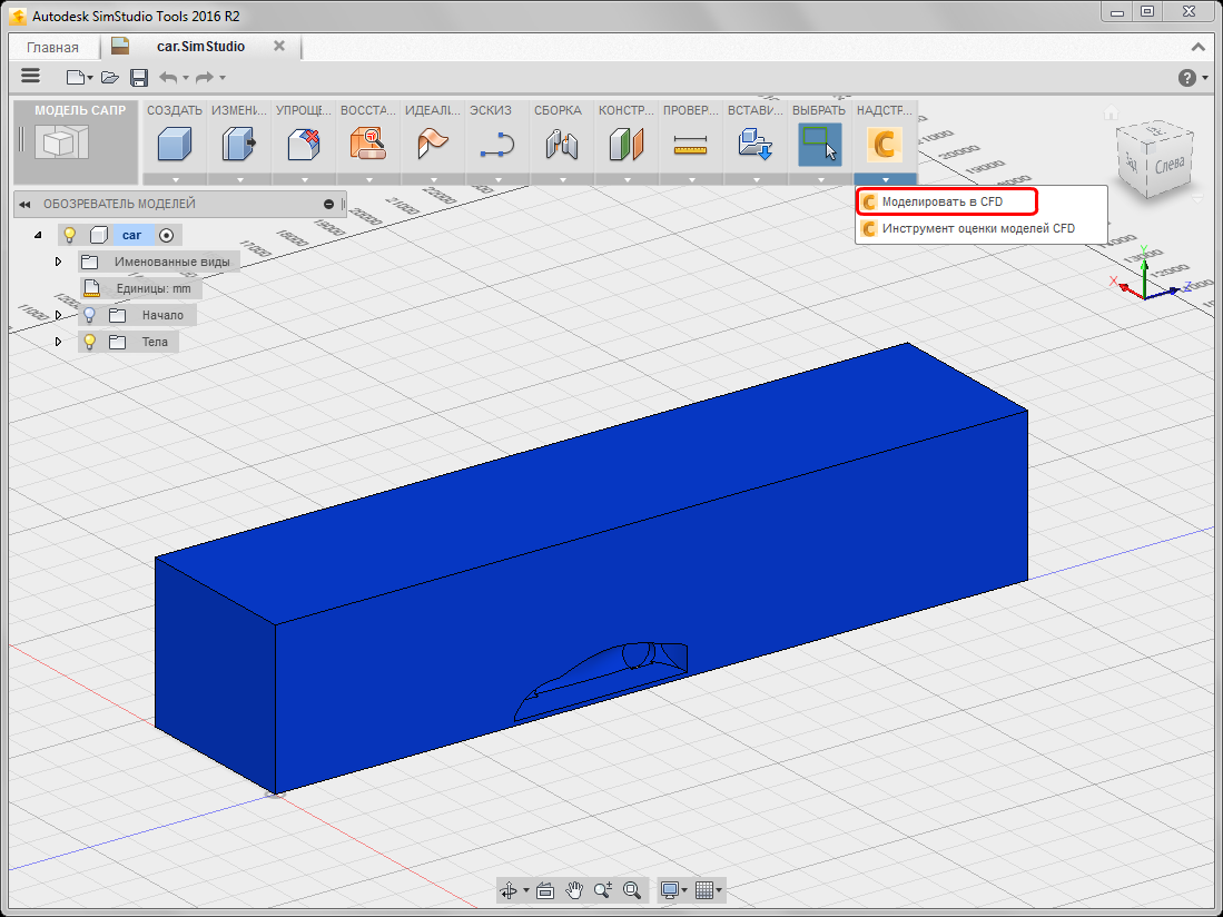 Разверните меню Надстройки и выберите Моделировать в CFD.