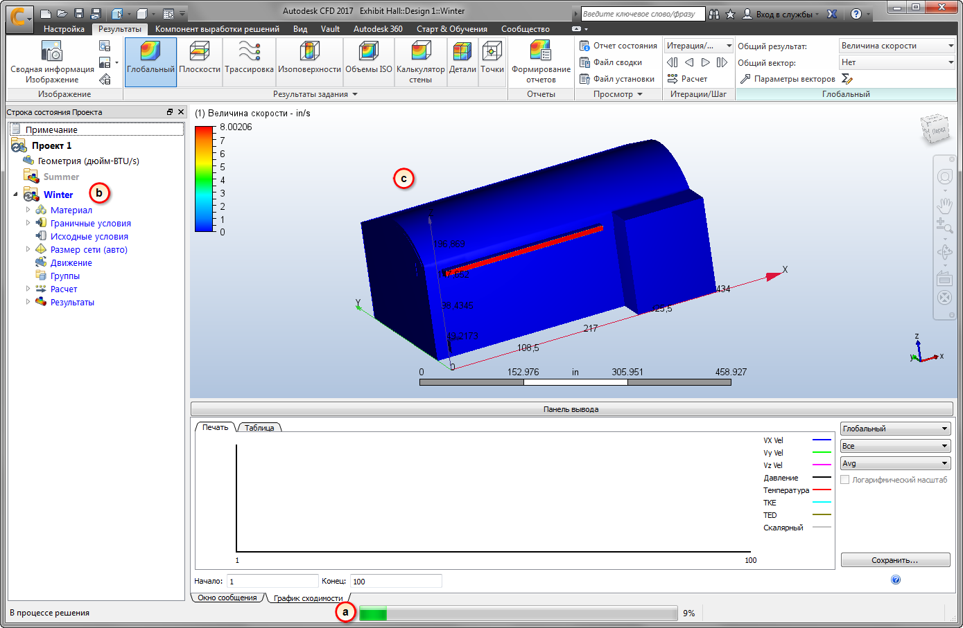 - c. Autodesk ® CFD отображет результаты, поскольку они вычисляются.