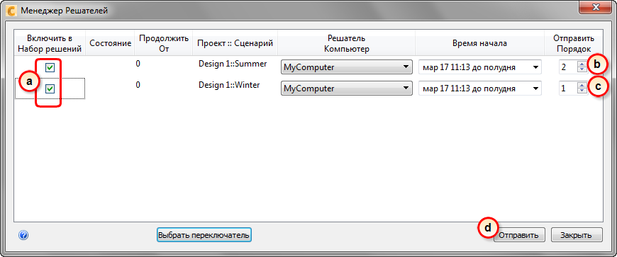 Прим.: Мы изменили порядок "Отправить", поскольку зимний сценарий уже открыт, так что имеет смысл запустить его в первую очередь.