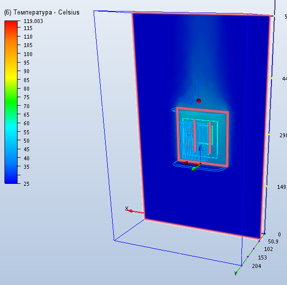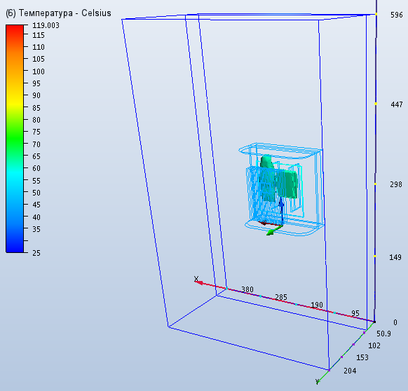 Прим.: Используйте Iso поверхность чтобы определить, где температура самая высокая и самая низкая.