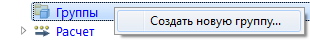 Щелкните правой кнопкой мыши на ветке "Группы" и выберите Создать новую группу:
