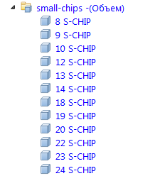 Если все детали модели названы "Деталь*", группа не будет заполнена. Чтобы добавить маленькие чипы в группу, выберите все двенадцать чипов: