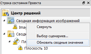 В Центре решений, щелкните правой кнопкой мыши на Сводные значенияи нажмите кнопку Обновить значения.