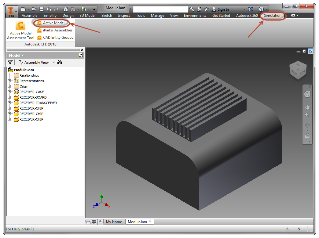 Например, если запуск выполняется из Autodesk® Inventor, выберите Моделирование, а затем Активная модель.