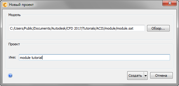 В диалоговом окне Диспетчера файлов перейдите в папку Users\Public\Public Documents\Autodesk\CFD 2018\Tutorials\<тип файла>\module.