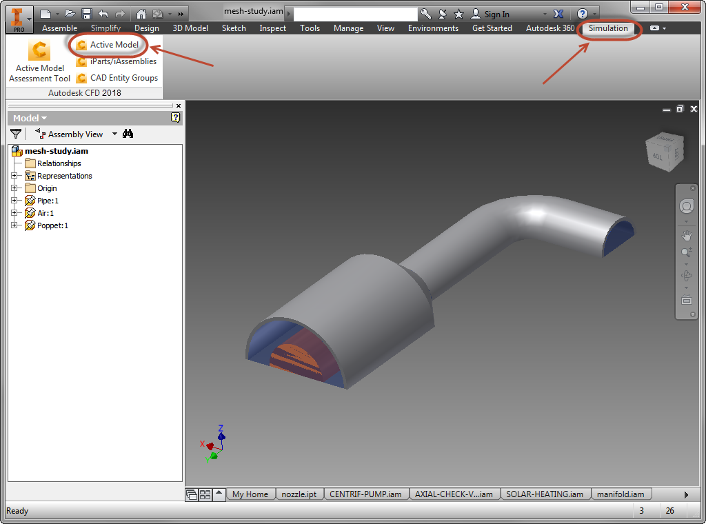 Например, если запуск выполняется из Autodesk® Inventor, выберите Моделирование, а затем Активная модель.