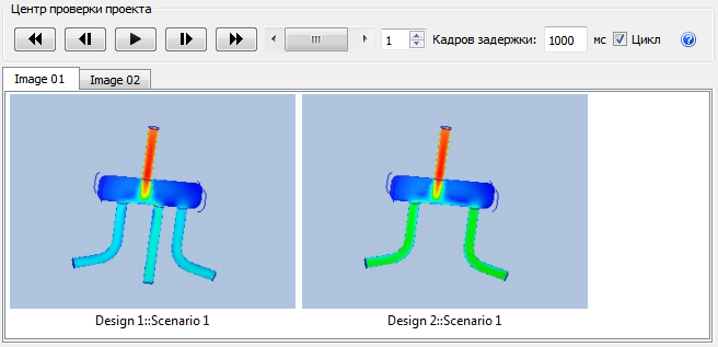 Используйте ползунок управления "VCR" " в области Центра просмотра проекта, чтобы сравнить два проекта.
