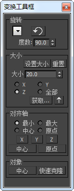 变换工具框具有便于对象旋转、缩放和定位以及移动对象轴的功能。