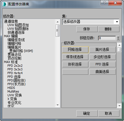 使用此对话框可以为“修改”面板创建自定义修改器和按钮集。