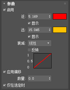 设置效果的最远距离。可单击色样为关联的 Gizmo 选择新颜色(如果需要)。