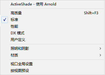 注: 您一次只能将一个视口设置为 ActiveShade。将另一个视口设置为 ActiveShade 时会清除先前设置的任何视口中的模式。