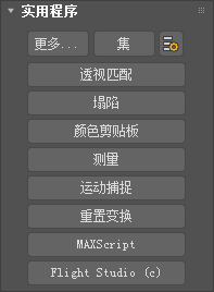这些按钮显示工具的选择。要运行实用程序,请单击相应的按钮。实用程序的设置可以显示在“实用程序”卷展栏下面的卷展栏上或对话框上。
