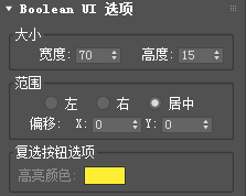 “Boolean UI 选项”卷展栏(针对复选按钮)