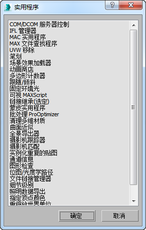该对话框列出了已不在“实用程序”卷展栏的当前按钮集中显示的所有实用程序。