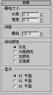 在每个栅格对象的“参数”卷展栏中是带有三个选项的“显示”组,三个选项为:XY 平面、YZ 平面和 ZX 平面。这些选项确定在视口中显示的栅格对象的三个平面。