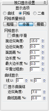 “网格显示”设置控制着实体对象在视口中的显示方式。当转换为可编辑网格/多边形格式以控制多边形的创建方式时,也使用这些设置。