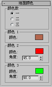 利用此卷展栏可以使用多达三种颜色的渐变向世界地平面增加彩色背景。地面显示在天空球体的内部,场景对象的下面。
