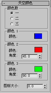 利用此卷展栏可以使用多达三种颜色的渐变向世界天空增加彩色背景。天空是包围场景对象的无限大球体。