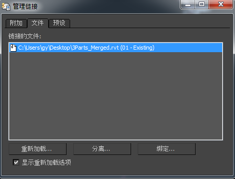 只有在“链接文件”列表中高亮显示特定文件后,“重新加载”、“分离”和“绑定”按钮才可用。