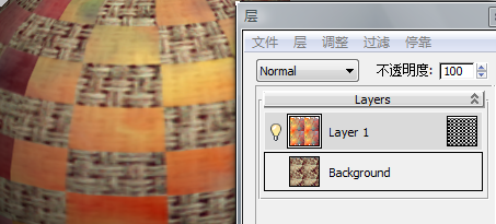 第一层使用棋盘格位图作为层遮罩,以规则图案显示背景层。