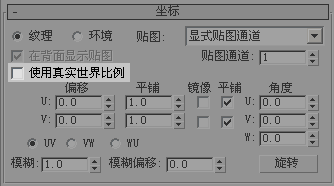 2D 贴图坐标设置包括“使用真实世界比例”切换。