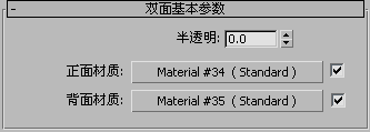 双面材质控件用于选择两个材质,以及整个材质的半透明度。