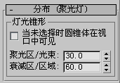 2. 在“分布(聚光灯)”卷展栏中,启用“当选择时圆椎体在视口中可见”。