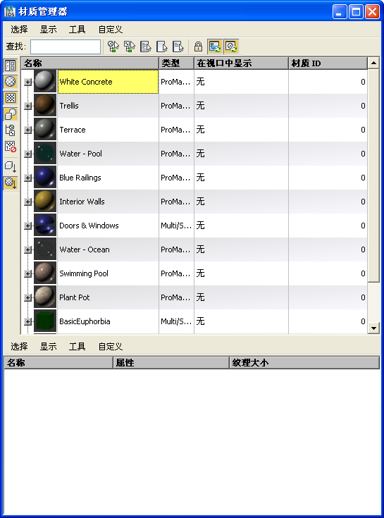 使用“材质资源管理器”可以浏览和管理场景中的所有材质。