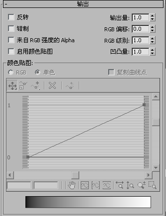 注: “输出”卷展栏上的大多数控件都是用于颜色输出的,不影响