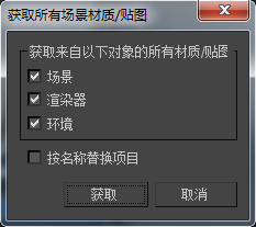 选择此选项后,3ds Max 将会打开“获取所有场景材质/贴图”对话框。