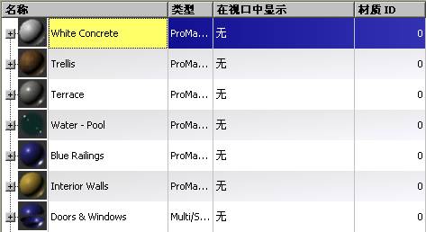 显示材质、对象、贴图和子材质的名称。可以编辑此列中的单元,方法是:单击一个单元,然后再次单击或拖动它以高亮显示文本,再为材质、对象或贴图键入新名称。