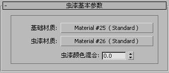 单击可选择或编辑虫漆材质。默认情况下,虫漆材质是带有 Blinn 明暗处理的“标准”材质。