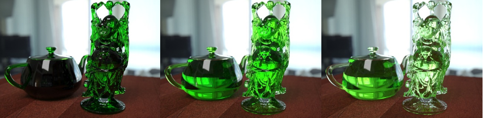 但是,如果深度不为 0.0,光线将受媒介中的吸收影响,这样,在指定的深度,光线将具有给定的颜色。
