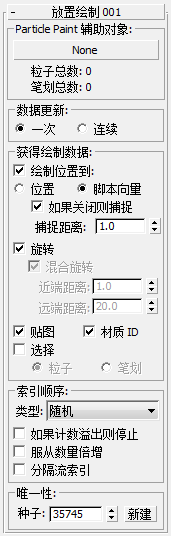 - 单击此按钮可指定“粒子绘制”辅助对象作为粒子种子的参考对象。