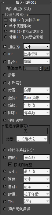 通过其余输入代理设置可以选择要从代理粒子系统复制的一个或多个属性。