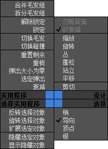 这些选项是“选择”组顶部按钮的快捷键,它们限制了可以选择头发导向的方式。