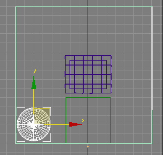 - 转到第 30 帧,启用“自动关键点”,并在“前”视口中,将球体置于长方体内部左下角,如下所示: