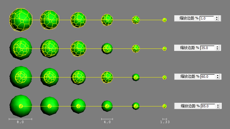 - 比例 % 充当现有尺寸的倍增。因此,例如,使用“长方体”设置,可以设置“宽度”/“长度”/“高度”的比例,然后使用“比例 %”设置实际大小。
