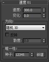 “速度”操作符提供的方向控制基于“粒子流”图标的位置和方向。使用其他对象作为发射器时,要获得最佳效果,请改用速度按曲面操作符。