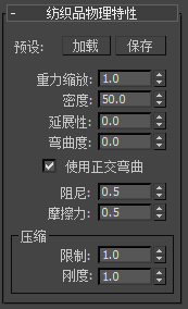 “纺织品物理特性”卷展栏