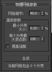 - 此只读字段显示生成的凸面物理图形中的实际顶点数。根据图形网格和该卷展栏上的其他设置,此值可能与“顶点”设置(参见下文)不同。