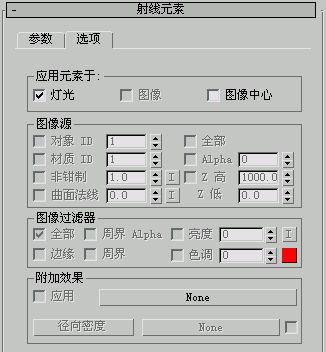 “射线元素”卷展栏,“参数”面板